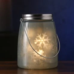 MARELIDA LED Dekoglas SNOW Rotierende Schneeflocken H: 16cm In Blau