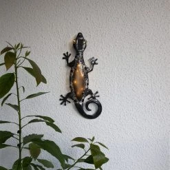 MARELIDA LED Solar Wanddekoration GECKO In Schwarz – H: 52cm
