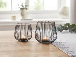 HomeLiving Spar-Set 2x Windlicht “Modern”, Ø 11 Cm, Ø 13 Cm In Schwarz