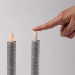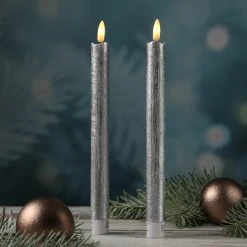 MARELIDA 2er Set LED Stabkerzen Echtwachs Flackernd H: 25cm In Silber