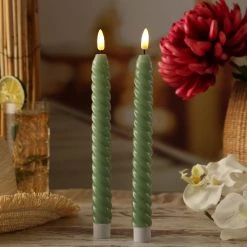 MARELIDA 2er Set LED Stabkerzen TWIST Tafelkerzen Echtwachs H: 25cm In Grün