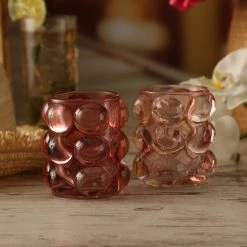 MARELIDA 2er Set Teelichthalter BUBBLE Glas Windlicht H: 9cm In Rosa