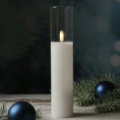 MARELIDA LED Kerze Im Glas Windlicht Echtwachs Flackernd H: 25cm In Weiß