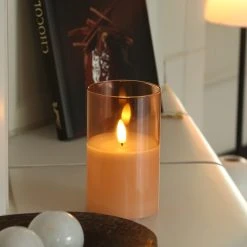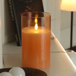 MARELIDA LED Kerze Im Glas Windlicht Flackernd D: 7,5cm H: 12,5cm In Orange