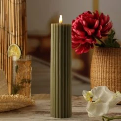 MARELIDA LED Kerze LIV Gerillt Echtwachs Flackernd H: 22,5cm In Grün