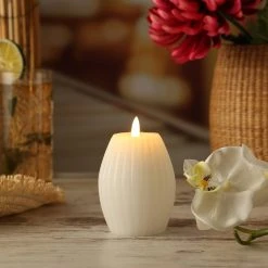 MARELIDA LED Kerze LIV Mit Rillen Echtwachs Flackernd H: 12cm In Weiß