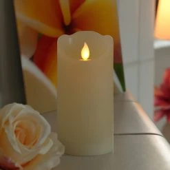 MARELIDA LED Kerze Twinkle Echtwachs Bewegte Flamme D: 7,5cm H: 15cm In Creme