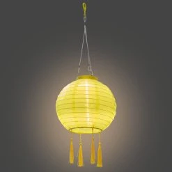 AMARE LED Lampion 2er-Set Solar Quaste Lampenkette SOLARBETRIEBEN In Gelb