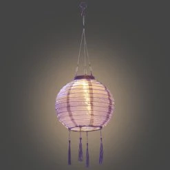 AMARE LED Lampion 2er-Set Solar Quaste Lampenkette SOLARBETRIEBEN In Lila