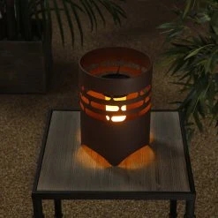 AMARE Solar Gartenfeuer Rund NICHT ERFORDERLICH In Rostfarbe