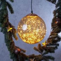 MARELIDA LED Kugel Mit Drahtlichterkette Hängend D: 30cm In Bernstein