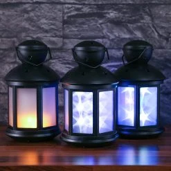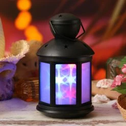 MARELIDA LED Laterne Farbiges Bewegtes Sternenmuster H: 22cm In Schwarz