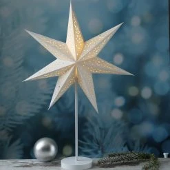 MARELIDA LED Papierstern Leuchtstern Stehend 6LED H: 64cm In Weiß
