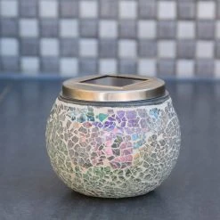 MARELIDA LED Solar Glas Windlicht Mosaik In Transparent – H: 10cm