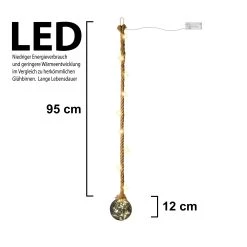 – Verschiedene Größen & Farben: wir bieten die LED-Kugeln am Seil in den Durchmessern 10, 12 & 15 cm sowie als Variante mit Milchglas, Rauchglas, Bernsteinglas & Perlmuttglas an.