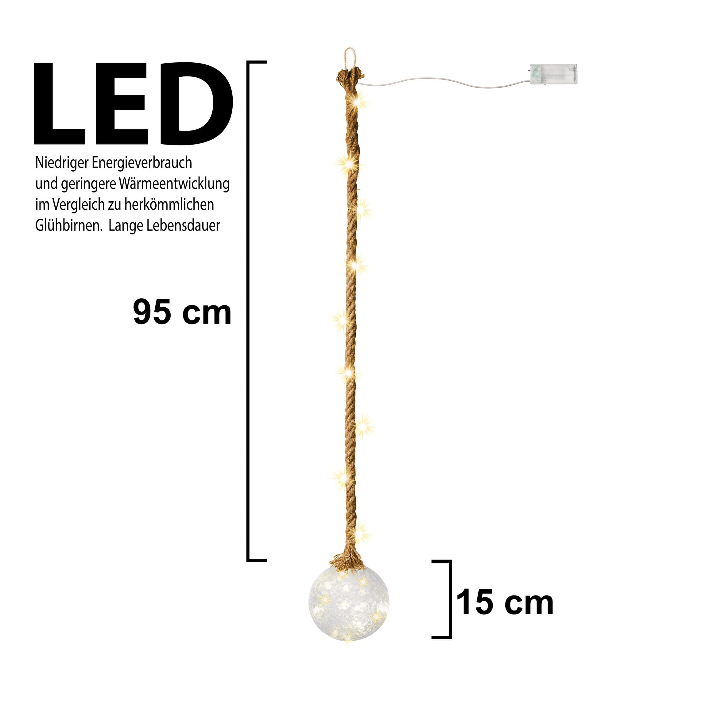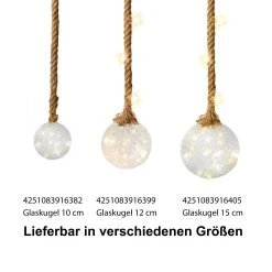 – Verschiedene Größen & Farben: wir bieten die LED-Kugeln am Seil in den Durchmessern 10, 12 & 15 cm sowie als Variante mit Milchglas, Rauchglas, Bernsteinglas & Perlmuttglas an.