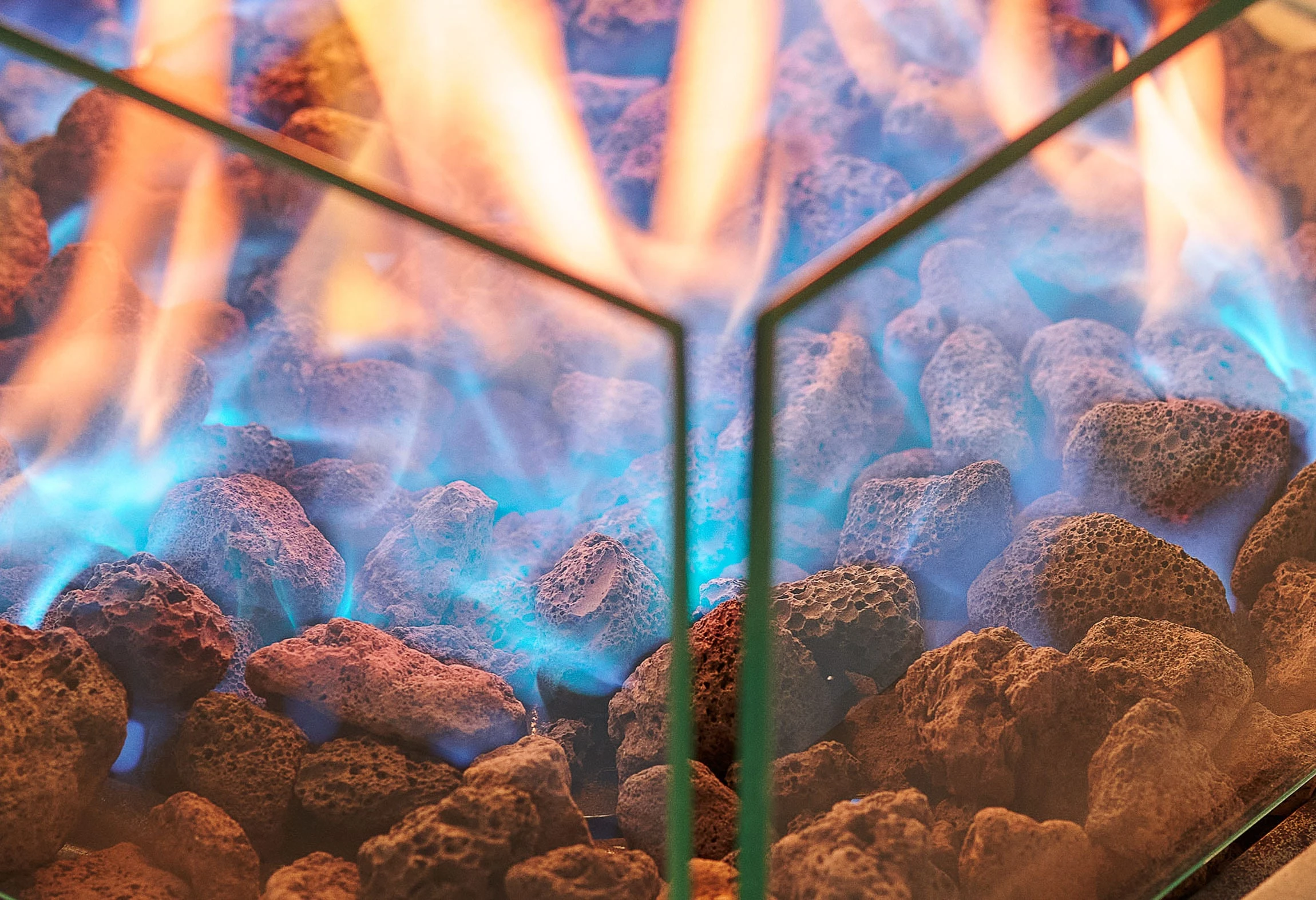 – Flammen-Windschutz aus gehärtetem Schutzglas, der dieser Feuerstelle ein schönes Flammenspiel und zusätzlich eine elegante Note verleiht
