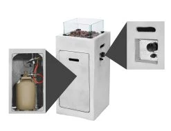 Genießen Sie Feuer und Flamme auf der Terrasse oder im Garten mit einer eigenen sicheren Feuerstelle. Auch auf einem größeren Balkon lässt sich die Gas Feuerstelle aufstellen, die überall eine glänzende Figur macht. Ihr elegantes, minimalistisches Design in grauer Farbgebung passt in jedes Ambiente. Der Tisch besteht aus regenresistentem, überaus hochwertigem Material. Ein Windschutz hält auch stärkere Böen ab, die Flamme erlischt nicht. Er besteht zur Sicherheit aus speziell gehärtetem Glas. Zusätzlich verleiht er der Gasfeuerstelle eine stilvolle Note.