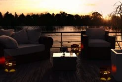 Die Solarfeuerstelle mit Flammeneffekt und integriertem Dämmerungssensor schaltet die LEDs bei Sonnenuntergang automatisch ein, so dass Sie ein warmes Licht in Ihrem Zuhause genießen können. Das Gerät verfügt auch über einen Auto-OFF-Modus, der sich bei Sonnenaufgang oder Sonnenuntergang aktiviert, um den Energieverbrauch zu senken.