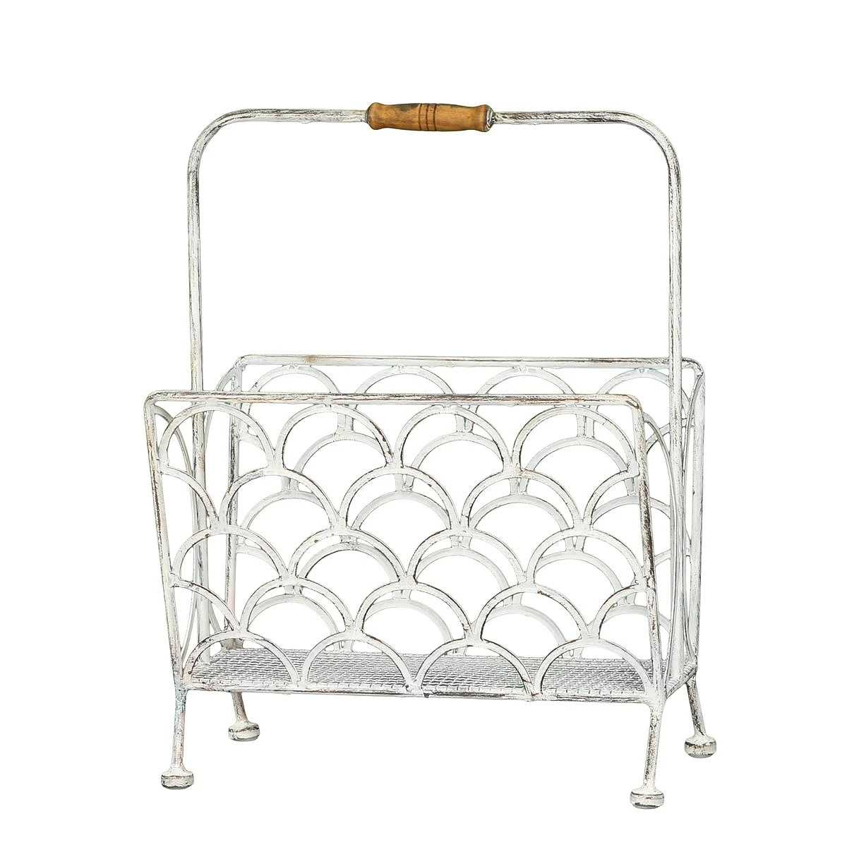 Der Zeitungsständer wurde sorgfältig handgefertigt und in einem antiken Weiß und Braun gebürstet, wodurch der schöne Vintage-Look erzielt wird.