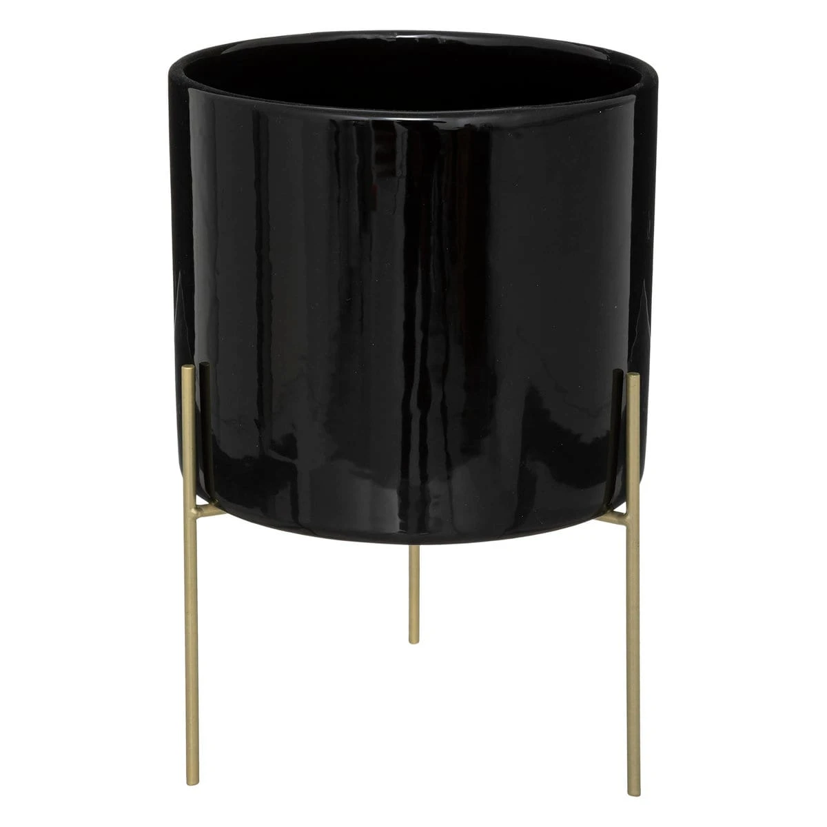 Blumentopf aus Keramik: Der Topf besteht aus Keramik in schwarzer oder weißer Farbe, aus der Sie wählen können. Der goldene Ständer sorgt für Glanz und hebt den Topf hervor.