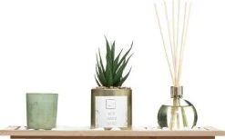 Set-Abmessungen betragen 37 x 8,5 x 15 Zentimeter, sodass das SECRET GARDEN Duftset auch auf kleinem Raum passt. Die Kapazität der Duftsubstanz beträgt 90 Milliliter. Es ist erwähnenswert, dass der grüne Diffusor in Kombination mit Goldelementen äußerst elegant ist und eine großartige Dekoration für modernes Interieur sein wird.