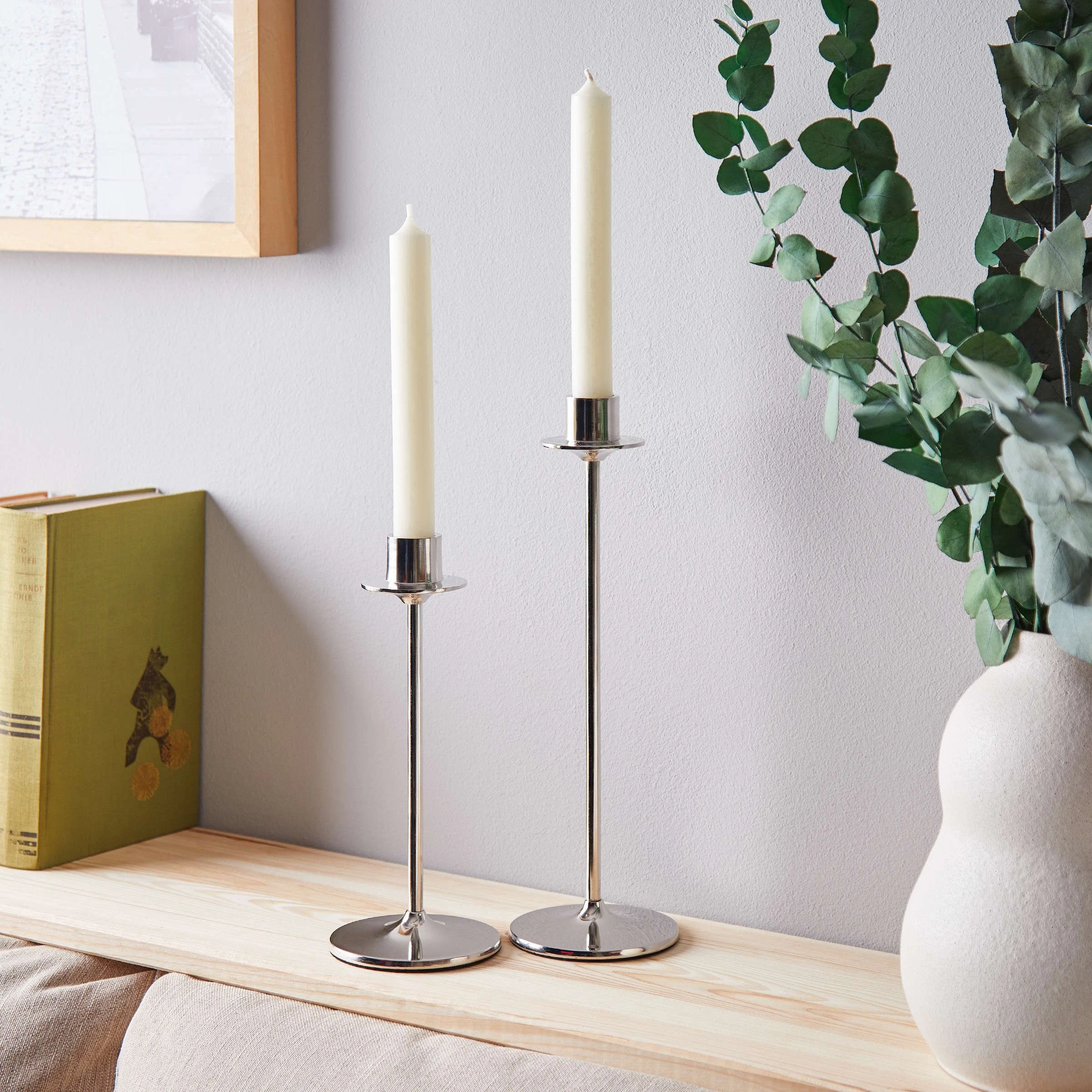 Ob Geburtstag, Ostern oder Weihnachten, ob festlicher Brunch, stilvolle Kaffeetafel oder stimmungsvolles Abendessen: Der Classic Kerzenhalter aus Eisen in Silber hat einen Stammplatz auf Ihrem gedeckten Tisch. Seine zeitlose, elegante Form und sein reduziertes, klares Design passen zu minimalistisch-edlen Dekorationen ebenso wie zu aufwändigeren Inszenierungen – und dabei wertet der schlanke Kerzenhalter jeden Look auf. In zwei Größen erhältlich, ideal auch zum Kombinieren.