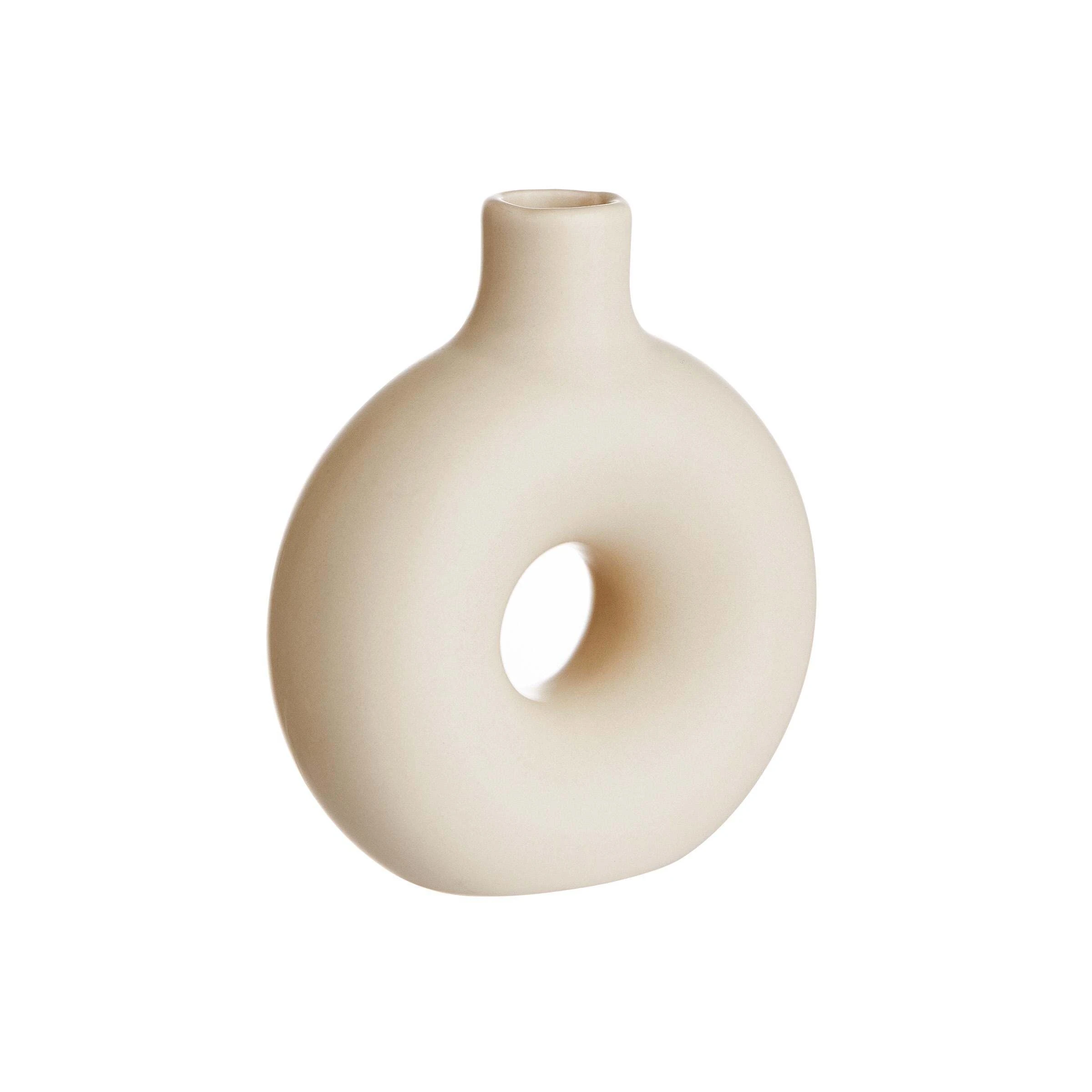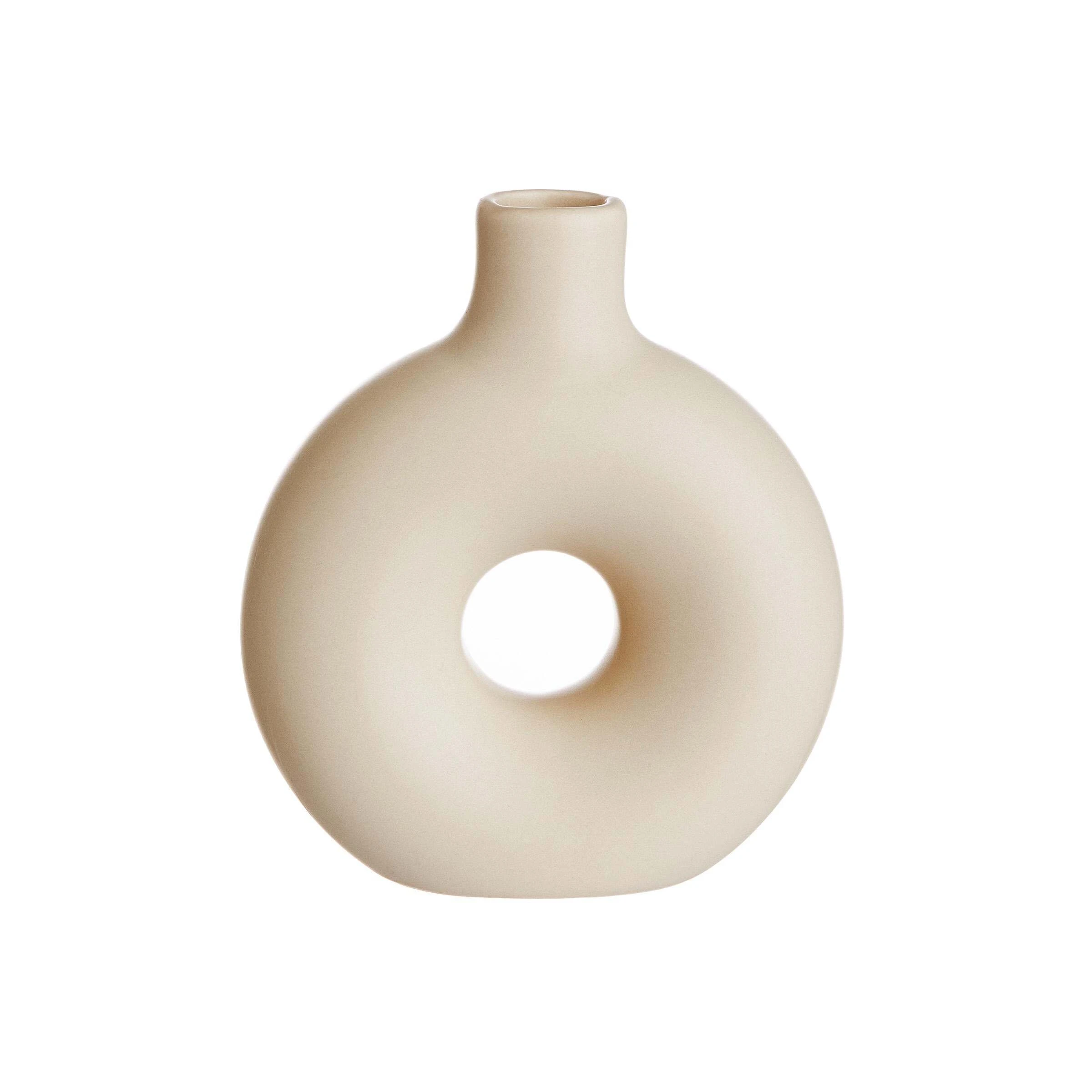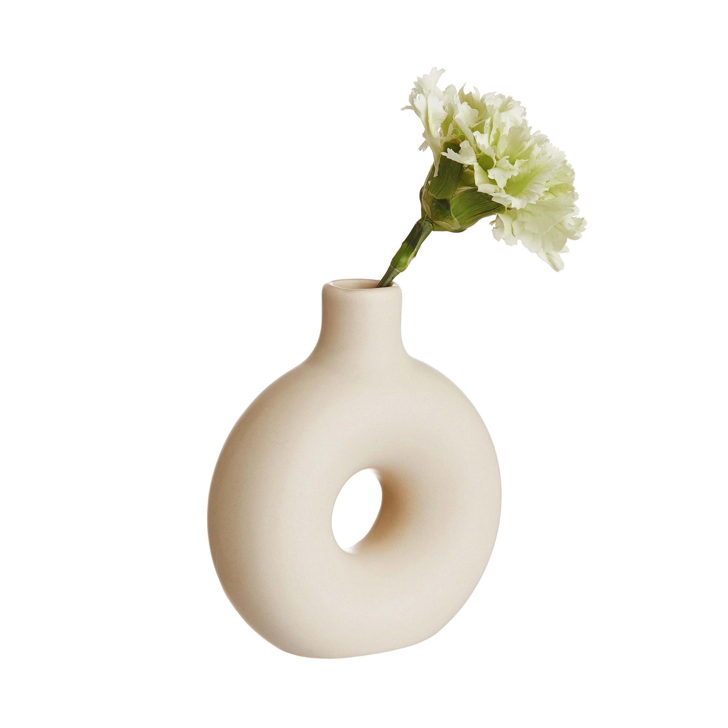 Wenn eine bestimmte Vasenform gerade in keinem modernen Zuhause fehlen darf, dann diese: Die Loopy Mini Vase erinnert ein wenig an einen Donut, und vielleicht finden wir sie genau deshalb so süß. Als kleine Keramik-Vase eignet sie sich ideal, um z.B. auf dem gedeckten Tisch oder auf einem Deko-Tablett Akzente zu setzen, gerne auch im Mix verschiedener Farben und Größen. Dafür gibt es die Loopy Vasen in Beige, Hellgrau, Rosa und Anthrazit – jeweils in drei Größen.