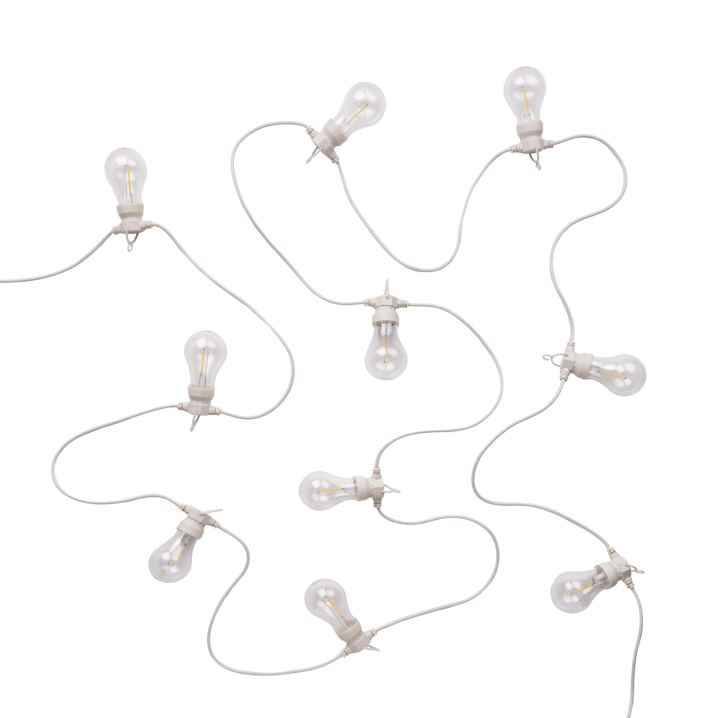 Clever im Detail: Die Bulb Light Lichterkette Outdoor mit Stecker bietet an allen 10 Glühbirnen (mit warmweißem Licht) kleine Aufhängungsmöglichkeiten. Damit haben Sie leichtes Spiel und viele kreative Möglichkeiten beim Dekorieren und Verschönern von Terrasse oder Balkon.