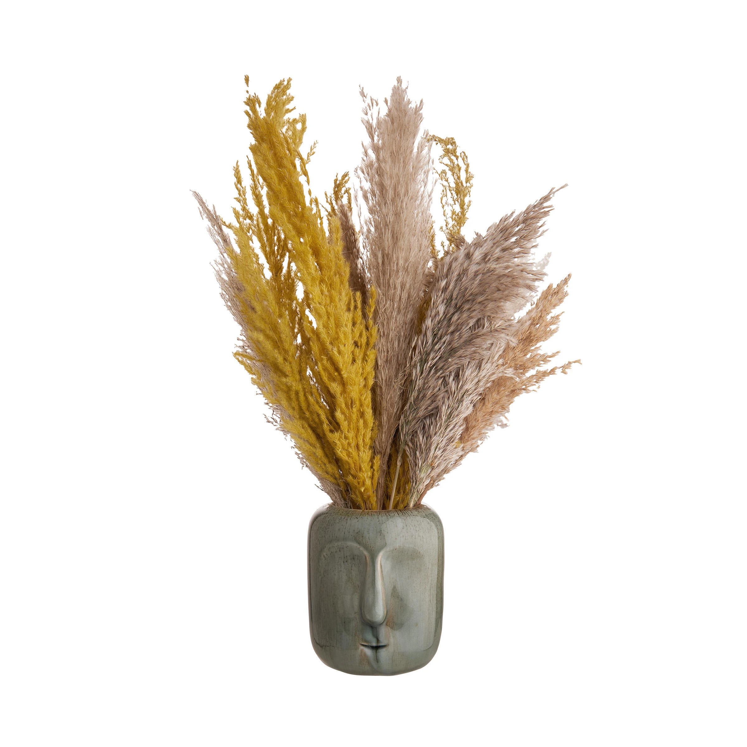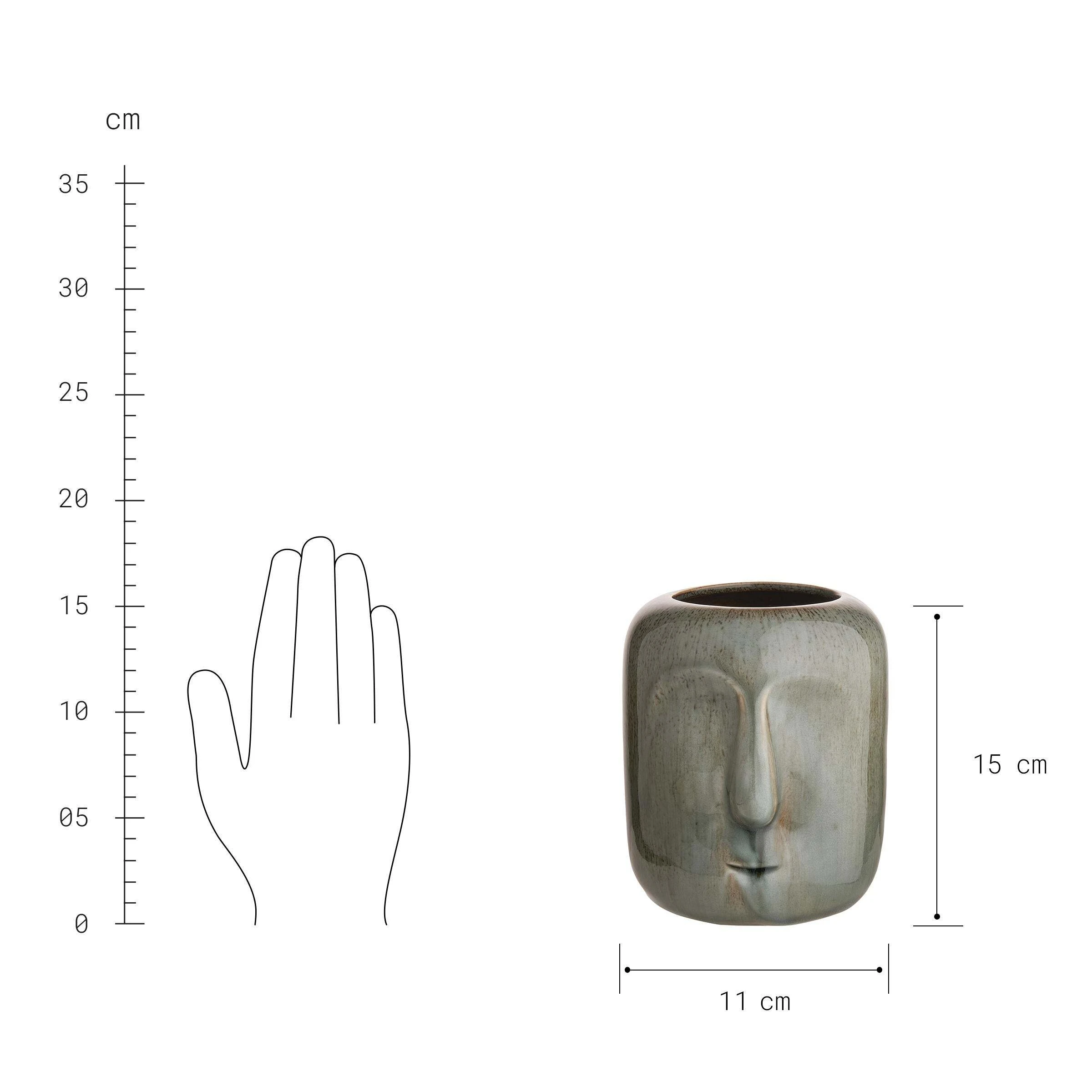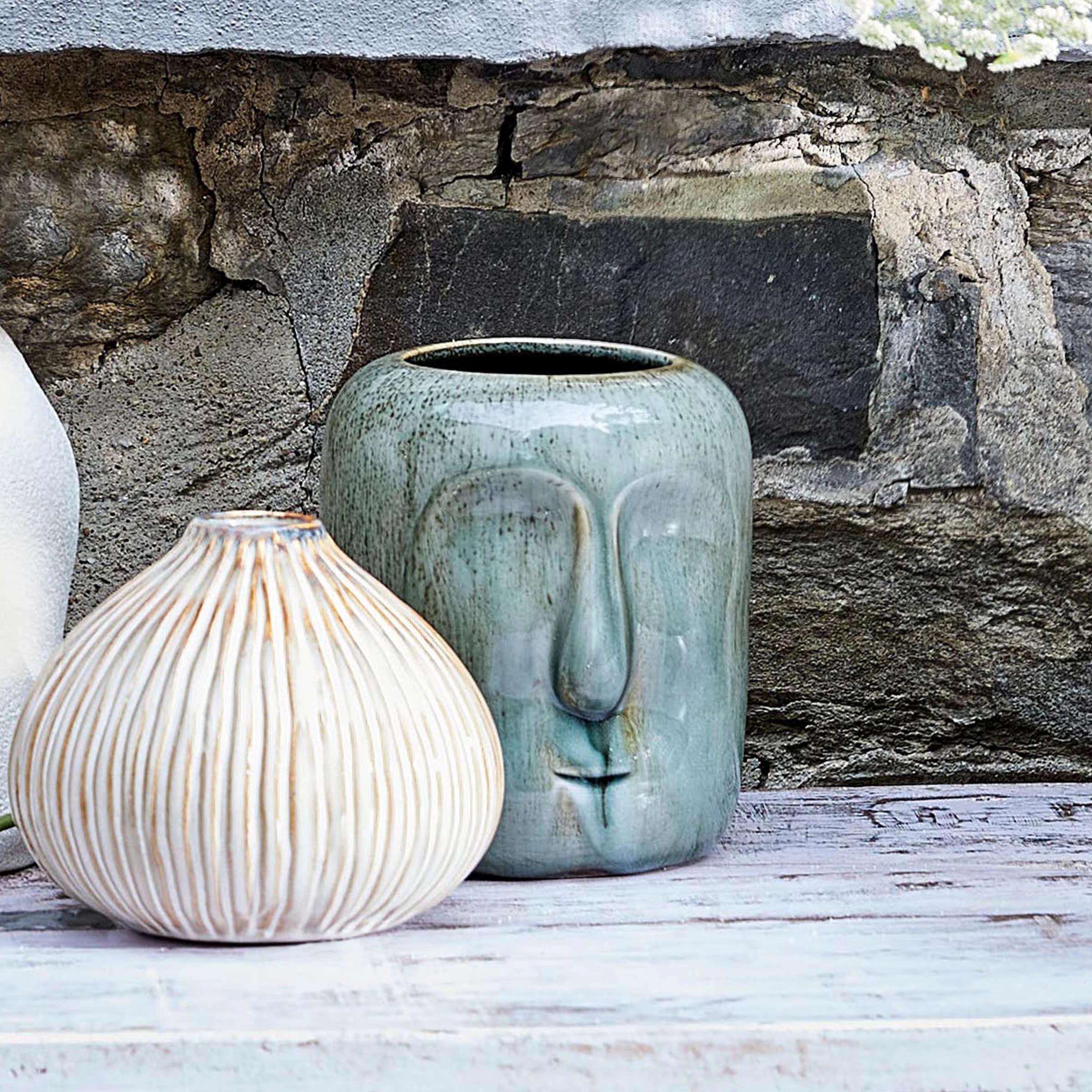 Die Deko-Vase ist nicht für Wasserblumen geeignet. Die Artist Vase mit Gesicht aus grünem Steinzeug sieht man in Glasur und Ausführung an, dass hier jemand mit Liebe und Erfahrung am Werk war. Genau das gibt dieser Vase ihren unverwechselbaren Ausdruck und macht sie zum Hingucker in Ihrem Zuhause.