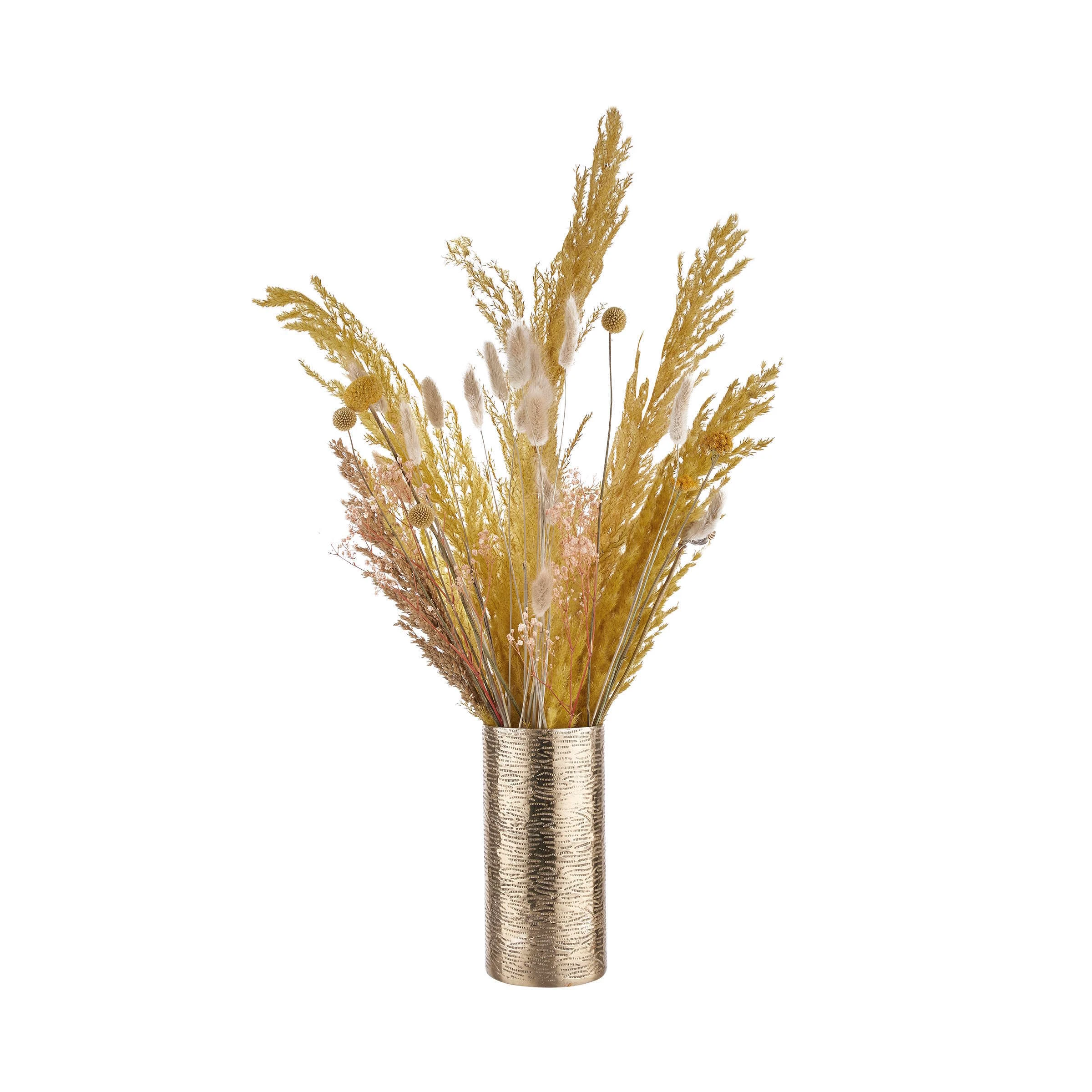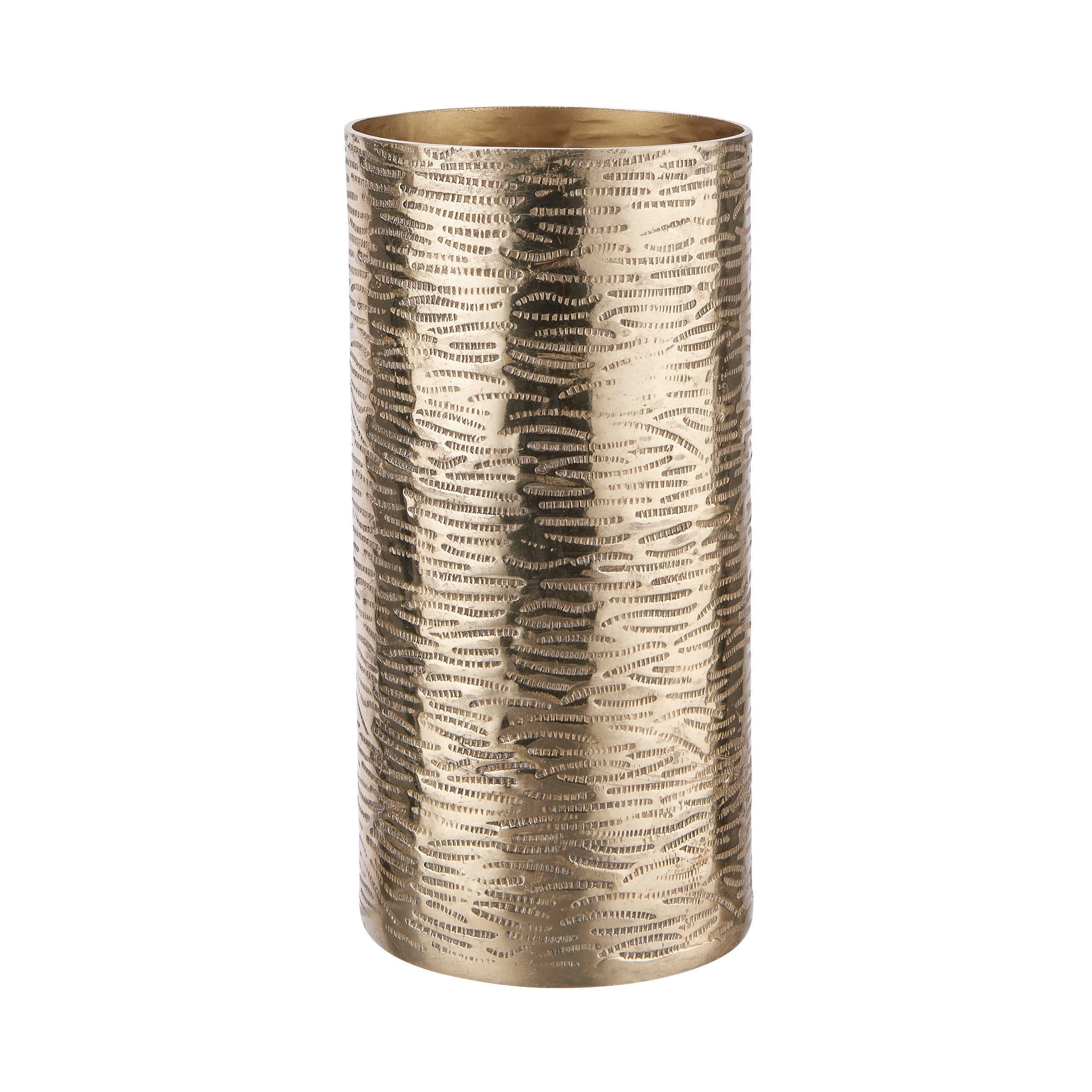 Ein echter Allrounder für jeden Dekozweck und alle möglichen Blumen oder Sträuße ist die Aureo Metall Vase in Gold aus Aluminium. Mit ihrer klassischen Form und universellen Höhe von 20 cm passt diese Vase auf Beistelltische, auf die gedeckte Tafel oder auf Sideboards bzw. Kommoden. Dabei lassen sich auch mehrere dieser goldenen Vasen gruppieren, etwa mit unterschiedlichen Blumen – fertig ist die stilvolle Tischdekoration.