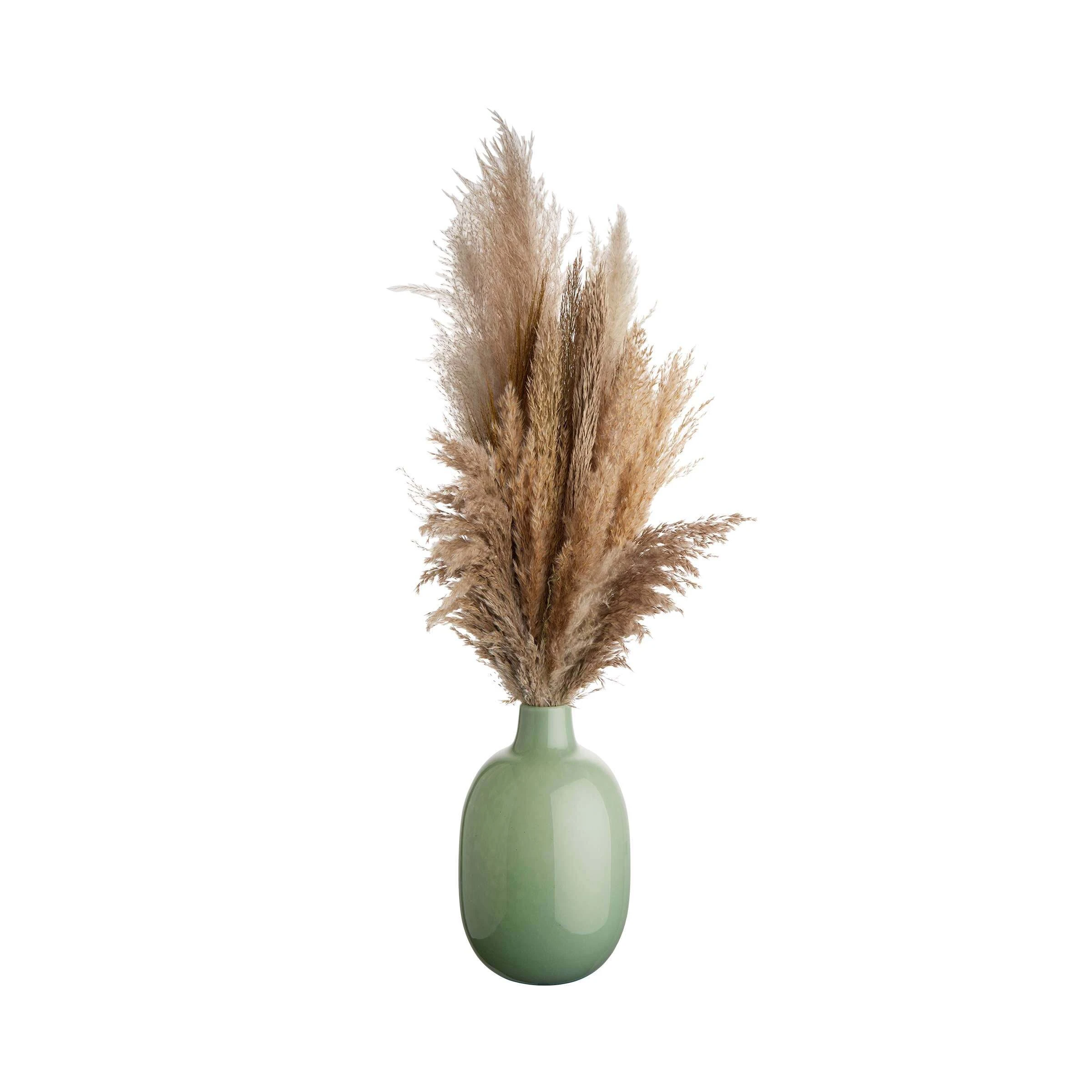 Genau wie der Edelstein Jade fasziniert die mundgeblasene Jade Vase in Pastellgrün aus Glas mit ihrer schimmernden, leicht verlaufenden Farbgebung. Harmonie und Ruhe gehen von diesem besonderen Design aus – Eigenschaften, die man auch echter Jade nachsagt. Und das sorgt für eine besondere Atmosphäre in Ihrem Zuhause.