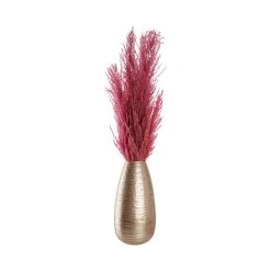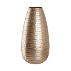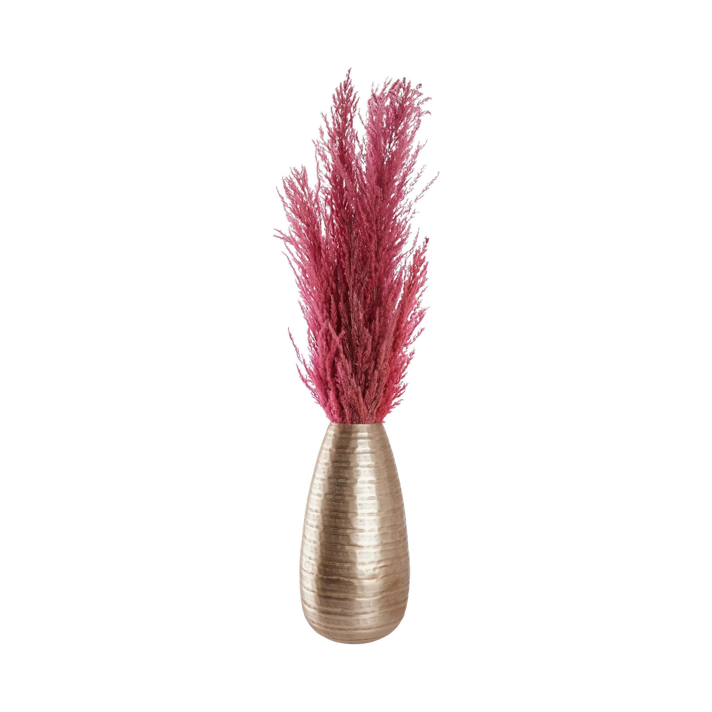 Bei der Nadia Metall Vase aus Aluminium kommt der sanft schimmernde Goldton ganz groß raus: Die sich nach oben verjüngende Vase ist stolze 40 cm hoch, und damit setzt sie ein sofort sichtbares Zeichen auf dem gedeckten Tisch, auf Sideboards oder Beistelltischen. Ideal, um als Einzelstück inszeniert zu werden oder für prachtvolle Dekorationen, die bewusst mit unterschiedlichen Höhen spielen.