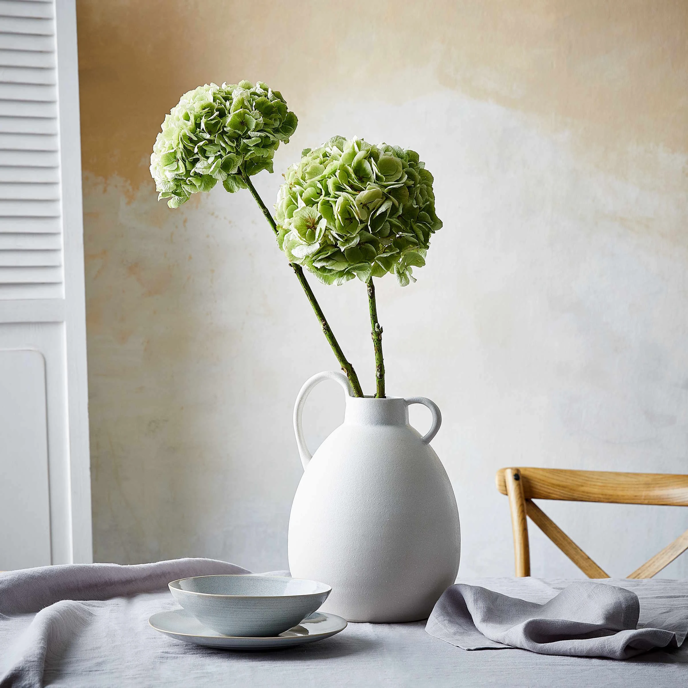 Von runden oder schlanken Vasen hebt sich die Lena Vase in cremefarbenem Terracotta ab. Sie passt besonders zur Blumen und Zweigen, die wie frisch gepflückt wirken, kann aber auch pur als Dekoobjekt inszeniert werden. Da bekommen Sie doch gleich Lust, einen kleinen Strauß Tulpen oder Narzissen auf Ihren gedeckten Tisch zu stellen.