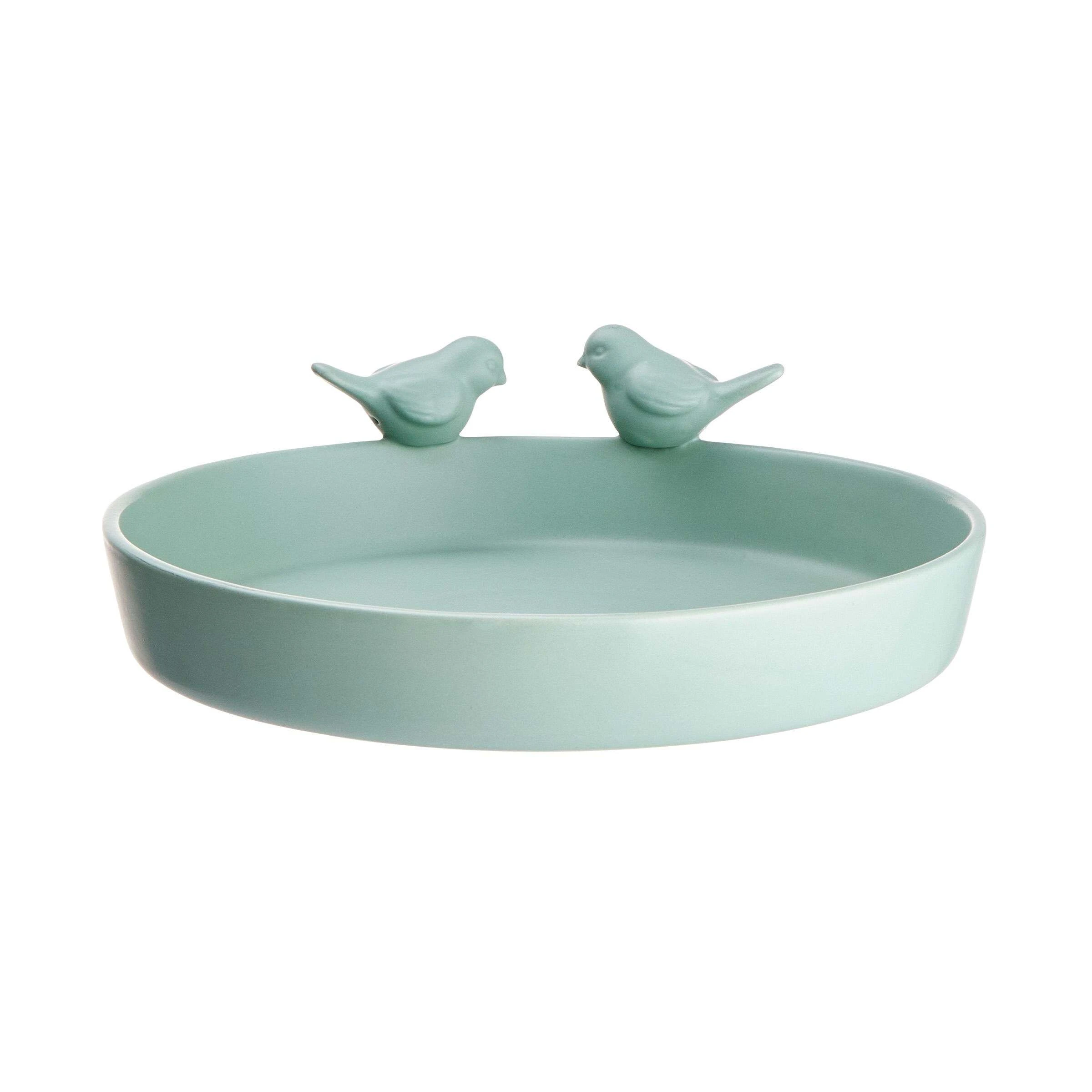 Splish splash: Sie laden Spatzen, Amseln, Rotkehlchen & Co. zu sich zum Plantschen ein mit dem Birds Place Vogelbad. Die dekorative Schale mit den zwei hübschen Vogelfiguren aus Dolomit in Salbei findet Platz auf Ihrem Balkon, einem breiten Fensterbrett oder auf Ihrer Terrasse. Am besten täglich mit Frischwasser auffüllen, und schon bald freuen Sie sich regelmäßig über gefiederten Besuch.