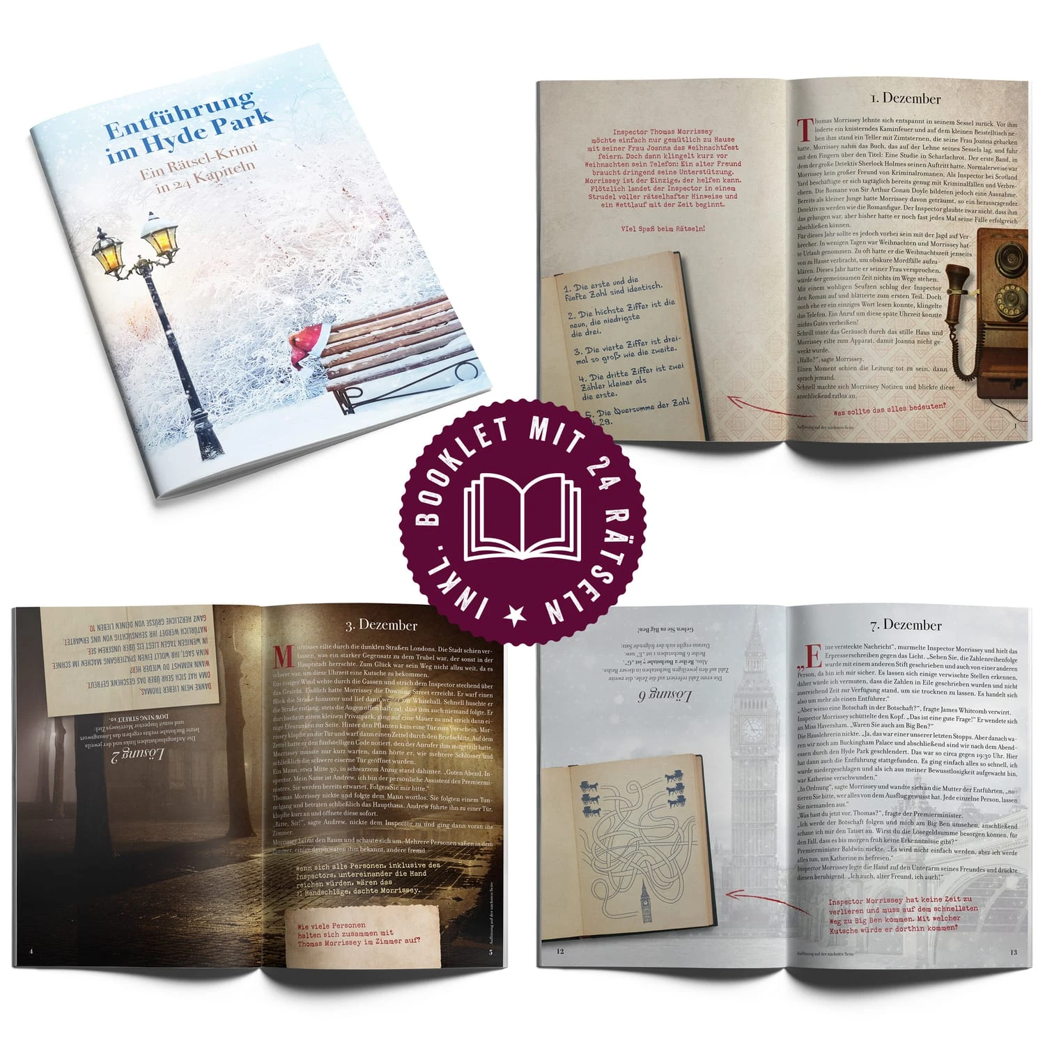 Diesem Tee-Adventskalender liegt ein ganz besonderer Krimi bei, in dem der spannende Fall einer Entführung in 24 fesselnden Kapiteln erzählt wird. Lösen Sie jeden Tag ein weiteres knackiges Rätsel und genießen Sie dazu einen besonderen Tee.