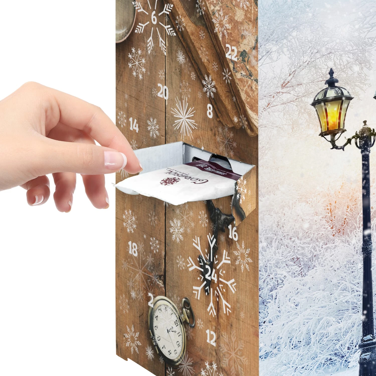 EIN PERFEKTES GESCHENK: Mit seinem zeitlosen Design ist der Advents-Kalender, hinter dessen Türchen sich jeden Tag eine köstliche Überraschung verbirgt, ein echter Blickfang. Sie können ihn in jedem Zimmer aufstellen und durch die umlaufende Motiv-Gestaltung je nach Geschmack und Standort mit der farblich passenden Seite ausrichten. Lassen Sie sich von unserem Krimi & Tee Kalender im Großormat (26 x 16 x 27 cm) mit Spannung durch die Adventszeit führen.