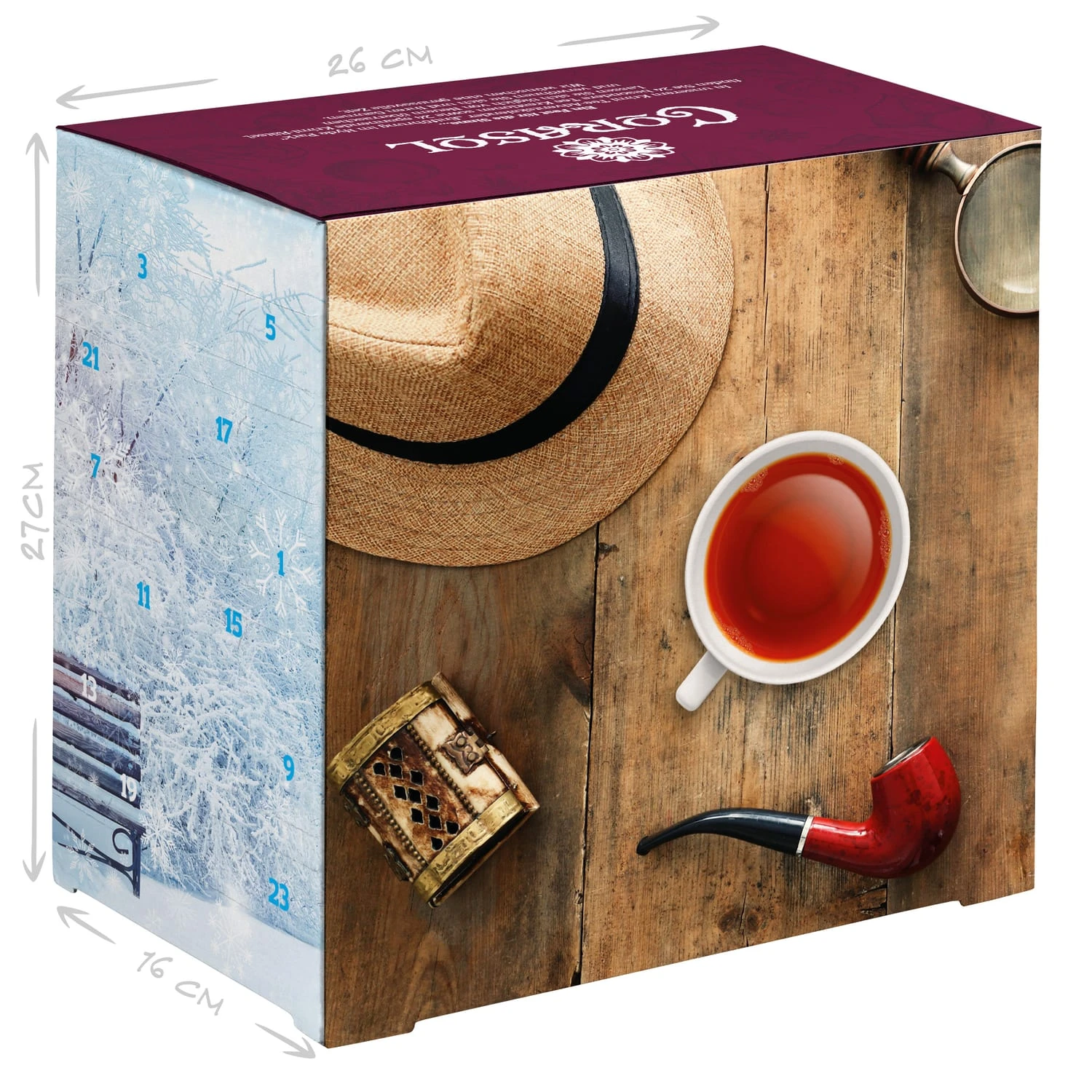 TEE & KRIMI: Diesem Tee-Adventskalender liegt ein ganz besonderer Krimi bei, in dem der spannende Fall einer Entführung in 24 Kapiteln erzählt wird. Hierdurch kann täglich ein weiterer Abschnitt der aufregenden Geschichte genossen werden.