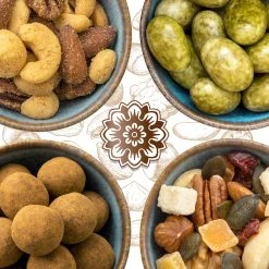 Sämtliche Nüsse wurden frisch geröstet und mit weiteren feinsten Zutaten wie zart schmelzender Schokolade, knackigen Kernen, aromatischen getrockneten Früchten oder exotischen Gewürzen kombiniert, um somit 24 erlesenen Nuss-Melangen zu komponiert. Die vielfältigen Nuss-Mischungen werden nach der Herstellung röstfrisch in einzeln beschrifteten Aroma-Schutzbeuteln luftdicht verpackt. Hierauf finden sich alle Informationen über Inhaltsstoffe, Allergene und Nährwerte. Zudem sind die Probier-Sets mit 30g so portioniert, dass die Nuss-Mischungen auch als kleine Snack-Mahlzeit und leckerer Energiespender für Zwischendurch genossen werden können.