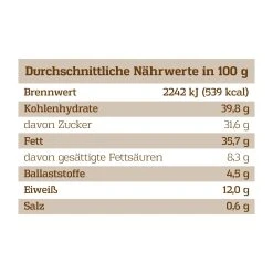 24 x NUSS-KREATIONEN: Der Kalender enthält eine umfangreiche Auswahl aus 24 ausgefallenen Nuss-Kreationen, die perfekt für ein vorweihnachtliches Genuss-Erlebnis komponiert wurden. Neben köstlichen Mischungen mit Früchten und Saaten, befinden sich im Kalender ebenfalls verschieden schokolierte Nusssorten, gebrannte Nüsse in unterschiedlichen Geschmacksrichtungen und herzhafte Nuss-Mischungen mit exotischen Gewürzen.