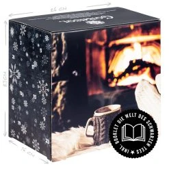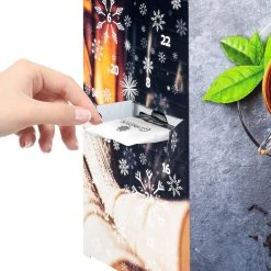 MODERNES 2-SEITEN DESIGN: Der Schwarztee-Adventskalender im Großformat (26x16x27cm) ist ein echter Blickfang und kann durch die umlaufende Motiv-Gestaltung individuell aufgestellt werden.