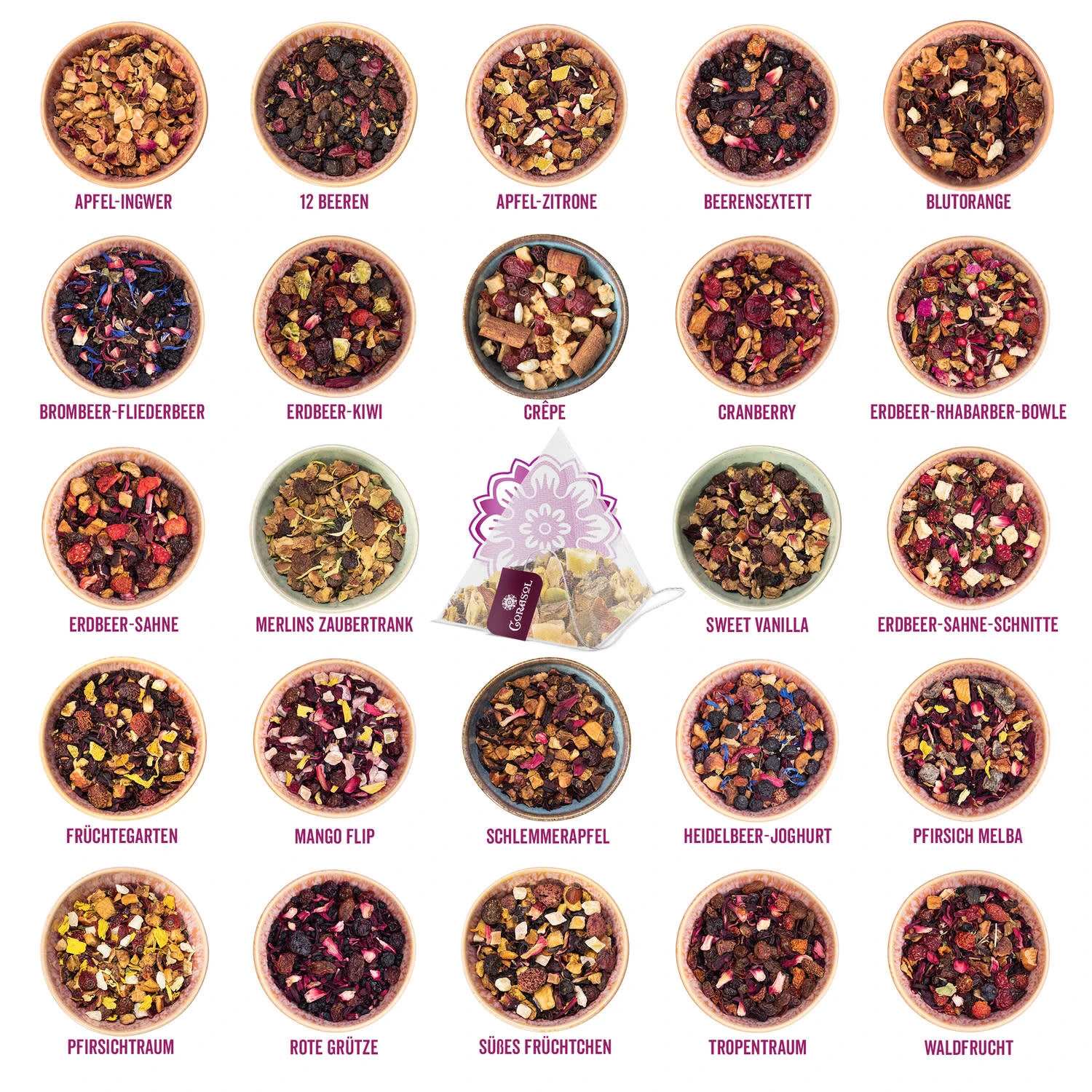 VIELFÄLTIGE AROMEN: Der Kalender enthält eine umfangreiche Auswahl aus 24 aromatischen Früchtetee-Kreationen, die nach der Herstellung in praktische Pyramidenbeutel sowie einzeln beschrifteten Aroma-Schutztüten luftdicht für ein perfektes Genusserlebnis verpackt wurden.
