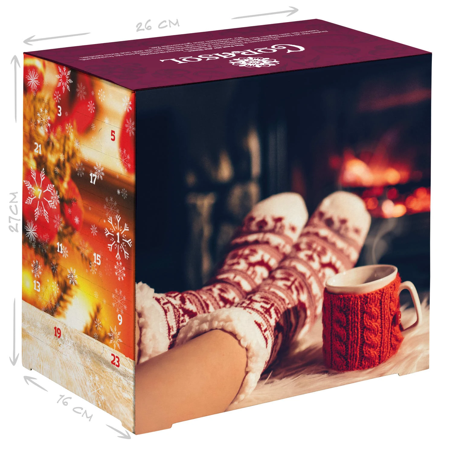 MODERNES 2-SEITEN DESIGN: Der Tee & Sprüche Adventskalender im Großformat (26x16x27cm) ist ein echter Blickfang und kann durch die umlaufende Motiv-Gestaltung individuell aufgestellt werden.