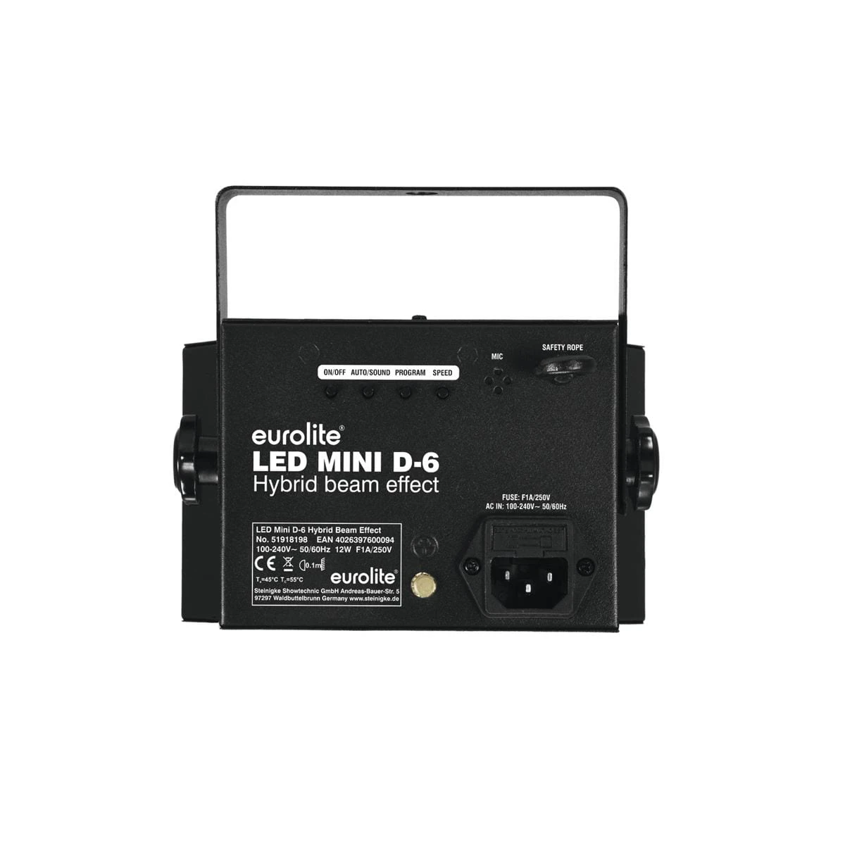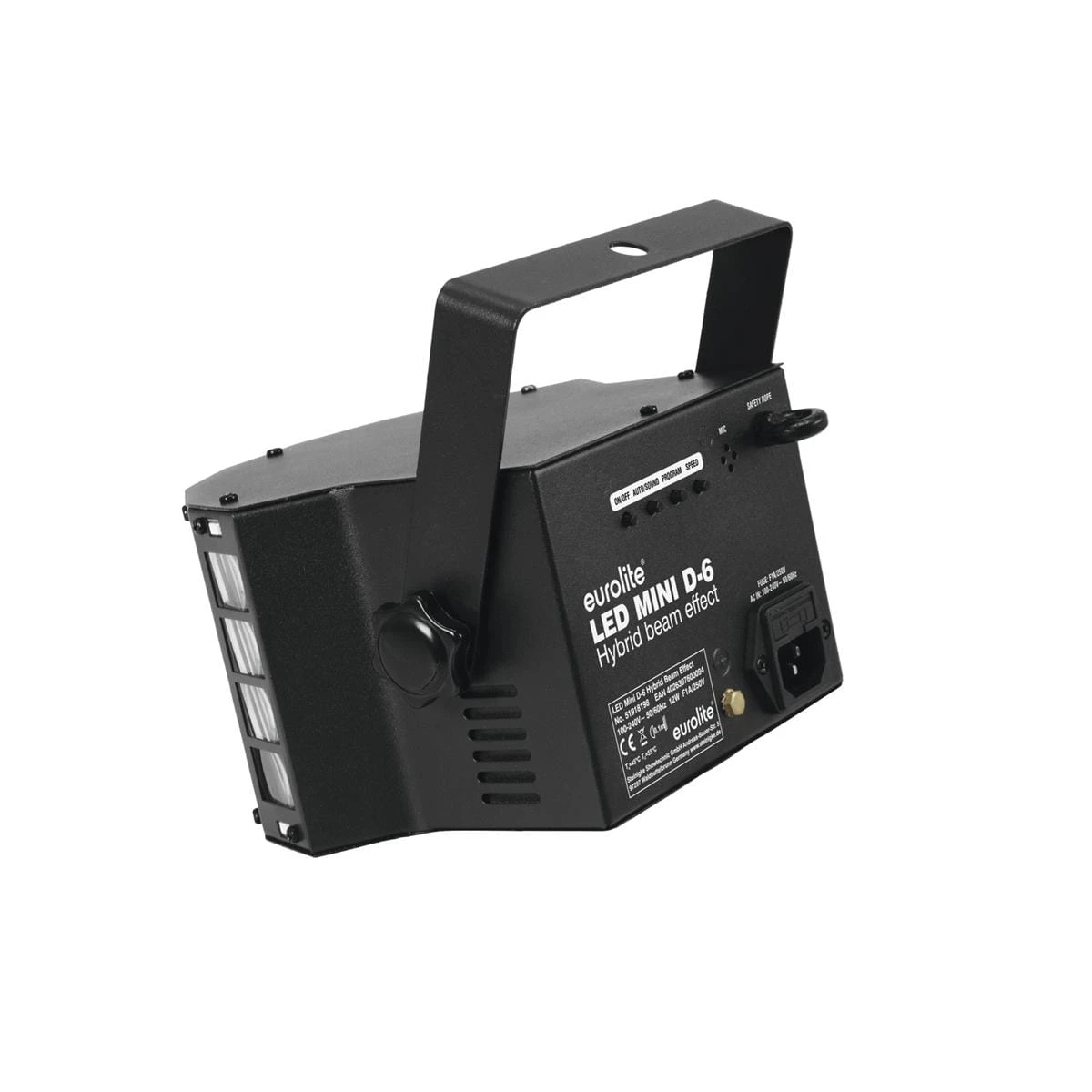 Da der Effekt auch eingebaute Programme und eine Musiksteuerung hat, benötigst Du keine externen Steuergeräte – Einfach Stecker rein und auf gehts auf die Tanzfläche!