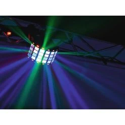 Dieser Lichteffekt ist ein Hybridgerät mit 2 Effekten in einem Gehäuse. Der Strahleneffekt wird durch einen Motor erzeugt, der das Licht durch die Linsen in den Raum schleudert. Der Effekt funktioniert vollautomatisch – ideal wenn Du selbst lieber auf der Tanzfläche mitfeierst. Die Farben wechseln dabei ständig, damit Deine Show immer aufregend bleibt.