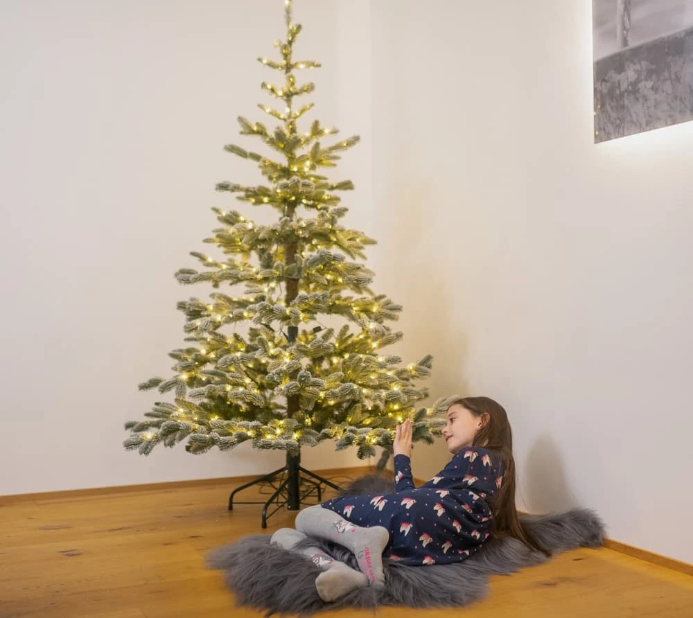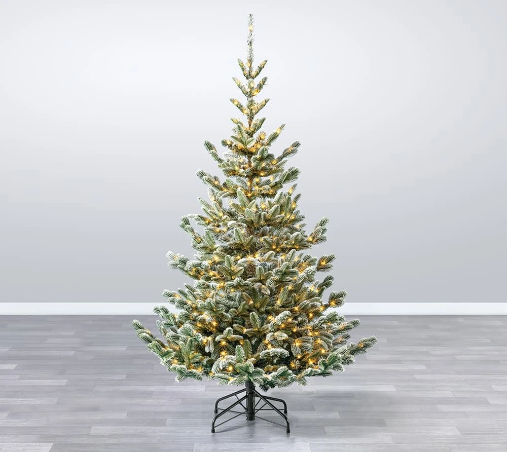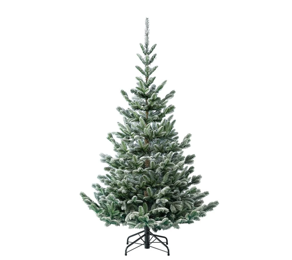 Evergreen Weihnachtsbaum Nobilis Kiefer mit LED-Lichterkette & Kunstschnee 180 cm Immergrün, nadelfrei und langlebig! Dichte & biegbare Zweige aus hochwertigem Kunststoff sorgen für einen hohen Echtheitsfaktor der Weihnachtsbäume von Evergreen. Der künstliche Weihnachtsbaum Nobilis von Evergreen besticht durch sein besonders naturnahes Aussehen, denn dank der dichten und biegbaren Zweige aus hochwertigem Kunststoff unterscheidet sich der Baum kaum von einem echten Weihnachtsbaum. Dauerhaft haltbarer Kunstschnee auf den Zweigen sorgt für einen besonders winterlichen Look. Durch den stabilen Ständer aus Metall steht der Weihnachtsbaum „alle Jahre wieder“ absolut kippsicher. Der Baum ist durch ein schnell zusammengebautes Stecksystem inklusive vormontierter Lichterkette fix zusammengebaut, und darf nach Herzenslust dekoriert werden. Lassen Sie Ihrer Kreativität freien Lauf, und schmücken Sie Ihren Weihnachtsbaum ganz nach Ihren Wünschen mit glitzernden Kugeln. Die künstlichen Weihnachtsbäume eignen sich aufgrund ihrer langjährigen Nutzbarkeit hervorragend als Deko-Element für Hotels, Kaufhäuser und Unternehmen. Besonderheiten: