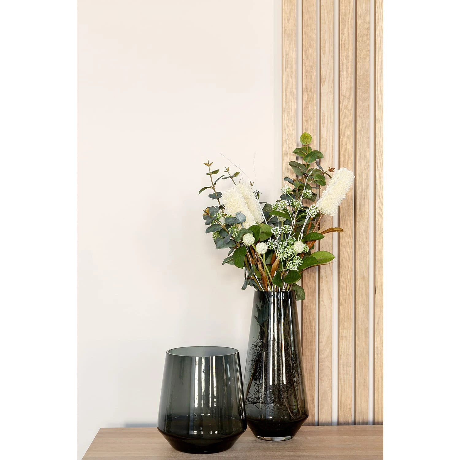 Hier trifft zeitlose Eleganz auf modernen Chic: Die formschönen Vasen aus der Serie LINEA beeindrucken mit ihrem schlichten Charme und wissen trotz all ihrer Zurückhaltung wunderbare Akzente zu setzen. Besonders in modernen und minimalistischen Interieurs kommen sie hervorragend zur Geltung. Die edle Optik von grau gefärbtem Glas harmoniert hervorragend mit glänzenden Metallelementen und Glasoberflächen. Aber auch im Zusammenspiel mit hellen Holztönen ergeben sich lebendige Kontraste. Für Abwechslung ist gesorgt: Die Vasen lassen sich nicht nur wunderbar mit einem blühenden Strauß dekorieren – die Ausführung mit größerer Öffnung ist auch als Windlicht eingesetzt ein exklusiver Blickfang. Wählen Sie aus vier verschiedenen Größen Ihren neuen Favoriten unter den Wohnaccessoires.