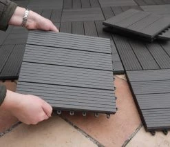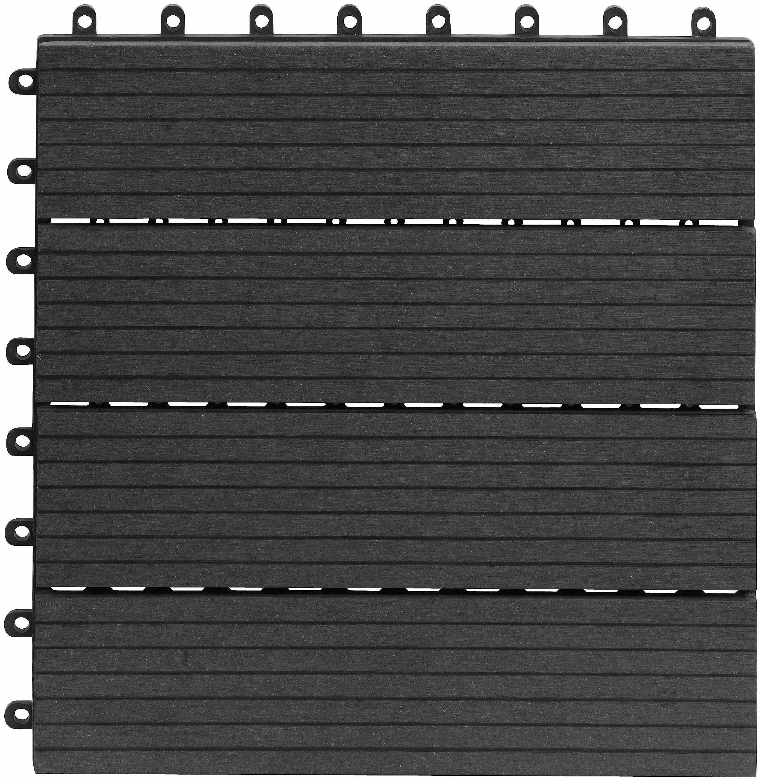WPC (=Holz/Kunststoff-Gemisch) Terrassenfliese 10er-Set (ca. 0,9 m2), 30x30cm, H 22mm, , witterungsfest, leicht verlegbarFür ein Wohlfühl-Ambiente auf der Terrasse, dem Balkon oder im Wintergarten. Auch als Weg verlegbar. Größe der Fliesen: 30x30cm, H22mm. Material: ca. 58% Bambus, ca. 42% hochwertiger Kunststoff und Additive. Rutschhemmend, splitter- und rissfrei, resistent gegen InsektenUV-beständig, witterungsfest, umweltfreundlich, keine Vorbehandlung notwendig, hohe Belastbarkeit! Mit den Fliesen verschaffen Sie sich auf Ihrer Terrasse, dem Balkon oder im Wintergarten eine Wohlfühl-Oase. Und das mit mühelosem Verlegen durch Click-System! Kein Bohren oder Schrauben notwendig! Die Kombination aus Bambus und Polymeren vereint den natürlichen Eindruck von Holz mit einer langen Lebensdauer ohne große Pflege. Einfache Verlegung mittels Kunststoff-Steckmechanismus an der Unterseite. Die Fliesen lassen sich einfach ohne weiteres Zubehör miteinander verbinden. Der Untergrund muss dabei stabil sein. WPC ist splitterfrei und dadurch barfußfreundlich. Keine Nachbehandlung notwendig! Rutschhemmend, resistent gegen InsektenUV-beständig sowie witterungsfest! Nachhaltiger und ökologischer Anbau ist