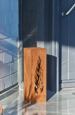 – Jede Deko Säule erhält durch die Veredelung ihre einzigartige Optik und Farbunterschiede im Material. Dieser Rostprozess wird insbesondere bei Außenaufstellung weitergeführt werden