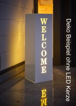 – Durch eine LED Kerze (separat erhältlich) kann die Dekosäule zusätzlich erleuchtet und zum Windlicht ergänzt werden